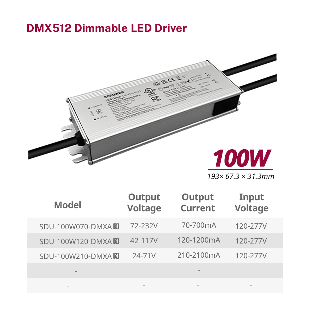 SDU-100WO70-DMXA | 100W | 72-232V | 70-700mA | 193*67.3*31.3mm |