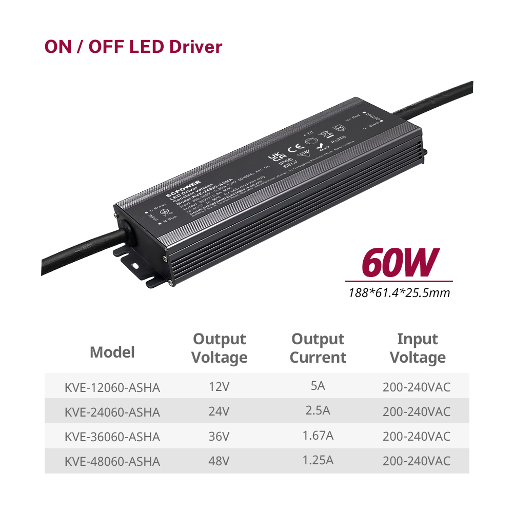 60W | KVE-12060-ASHA | 12V | 5A | 188*61.4*25.5mm | |