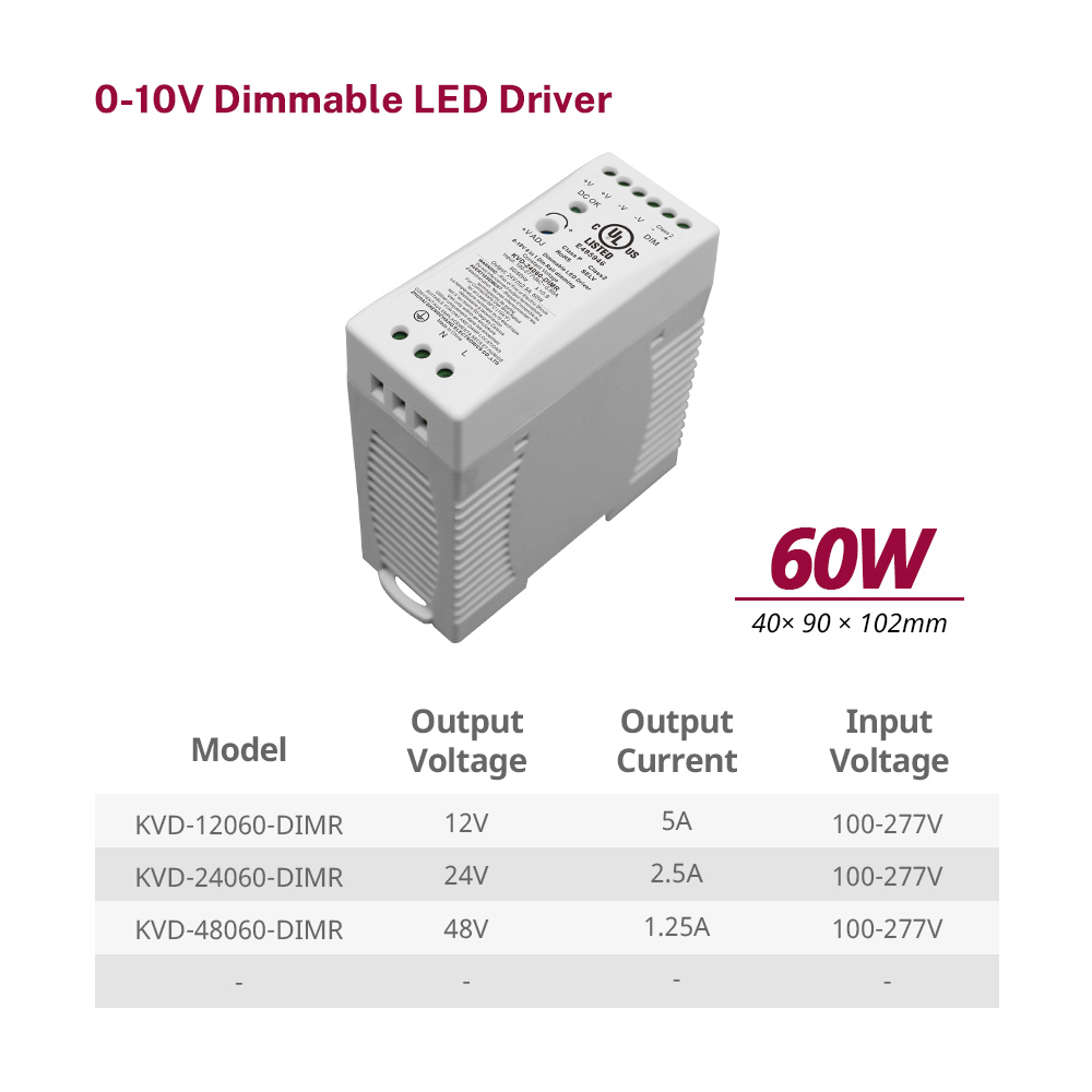 60W 0-10V Plastic Din Rail Driver Dimmable LED Driver CV 100 ac to 12v 24v 48v dc output Made in Vietnam