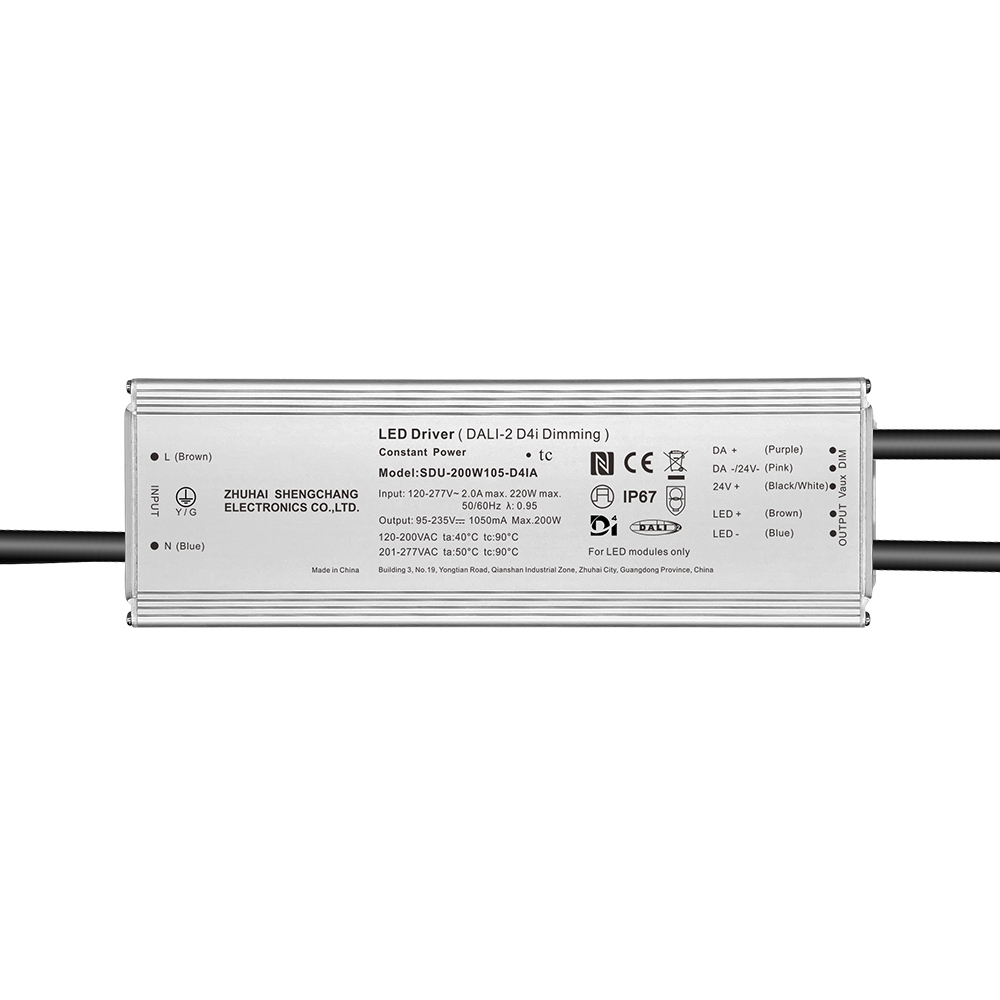 NDU This series of DALI-2 D4i certified outdoor LED driver power supplies are designed for intelligent lighting systems, with a power range of 60W-1200W, an input voltage of 120-277VAC, and compatibility with global power grid standards.