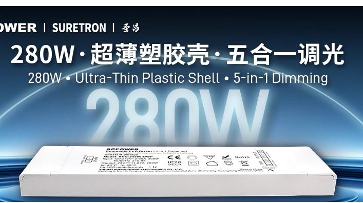 填补行业空白!圣昌280W超薄塑胶壳五合一调光电源全新上线,更薄 · 更轻 · 更强!